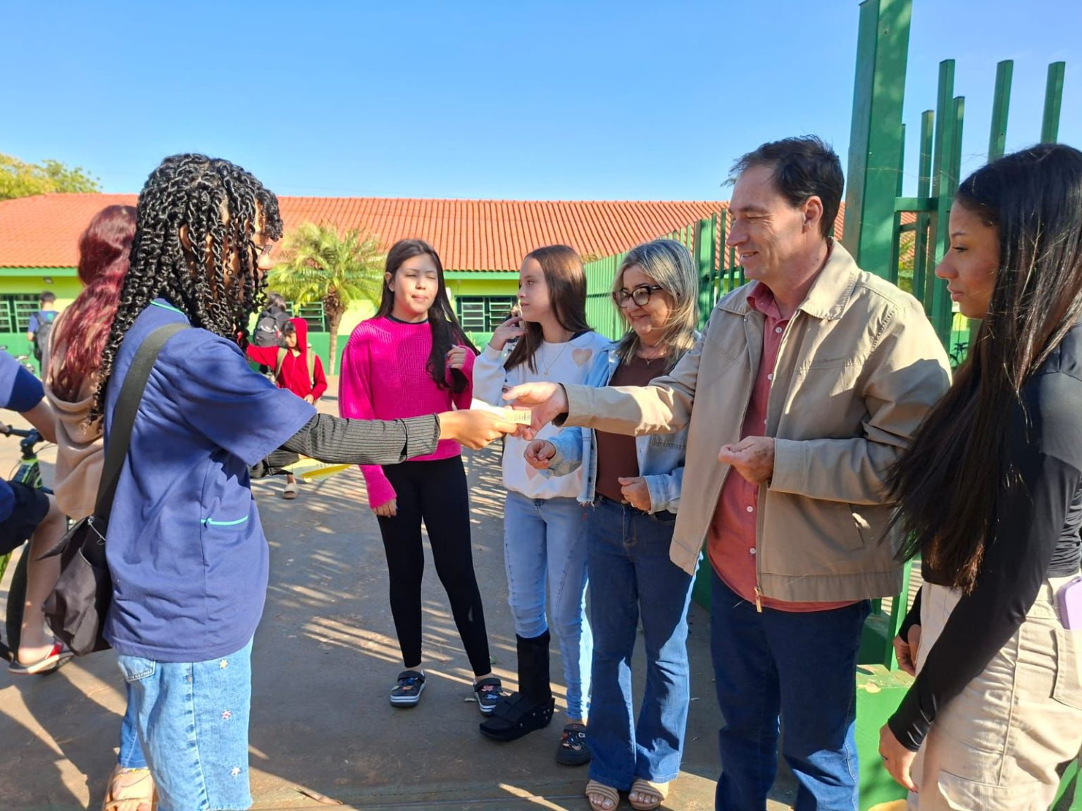 Durante o Setembro Amarelo, a unidade escolar realizou uma ação de acolhida com panfletos, articulada a partir das aulas de Filosofia.