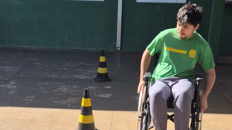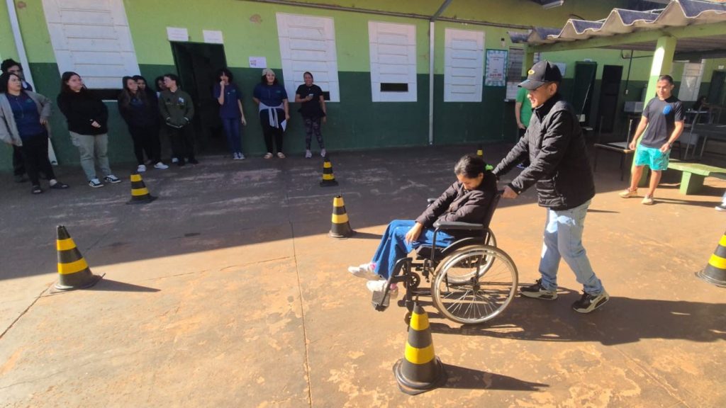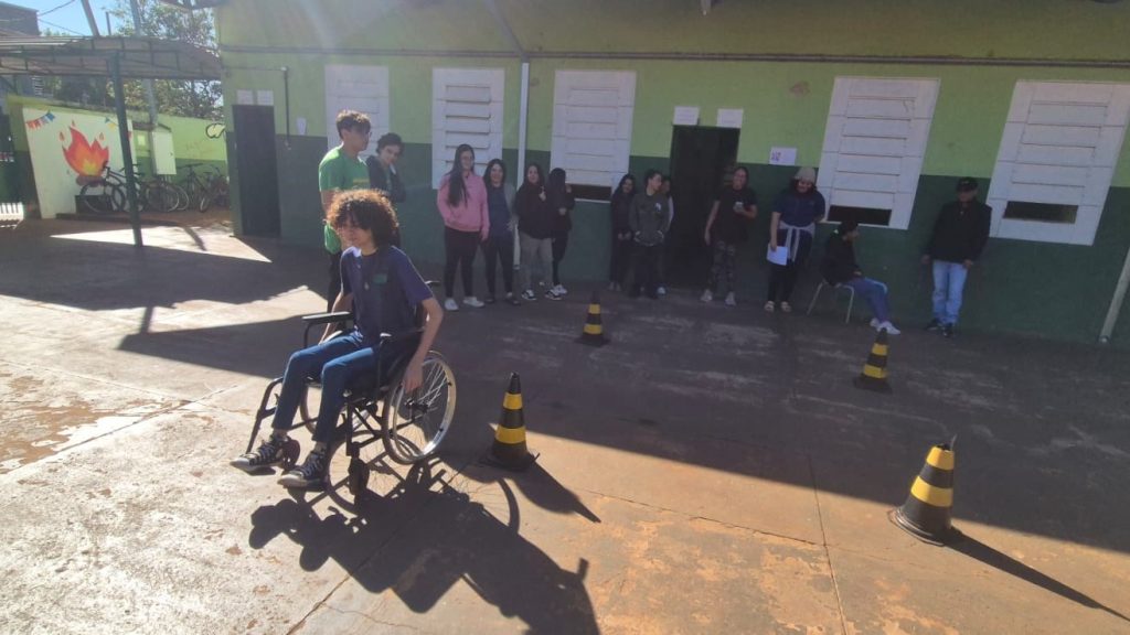 Pensando em contribuir com a ampliação da rede de apoio e a formação de amizades sem preconceitos, a Escola Estadual Flavina da Silva promoveu uma atividade com alunos do 3º ano do Ensino Médio, reproduzindo os desafios de um estudante com deficiência (PCD).