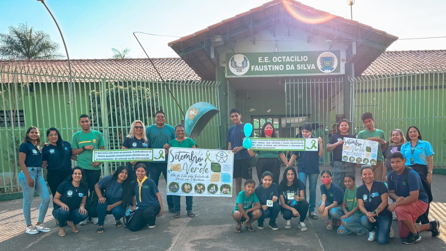 A Escola Estadual Octacílio Faustino da Silva, em Corumbá, promoveu, no dia 17 de setembro, a Blitz Educativa Setembro Verde: Inclusão em Movimento. A ação teve como referência o movimento nacional de conscientização sobre os direitos e potencialidades das pessoas com deficiência, reafirmando o compromisso da instituição em fortalecer uma cultura inclusiva no ambiente escolar e na comunidade.