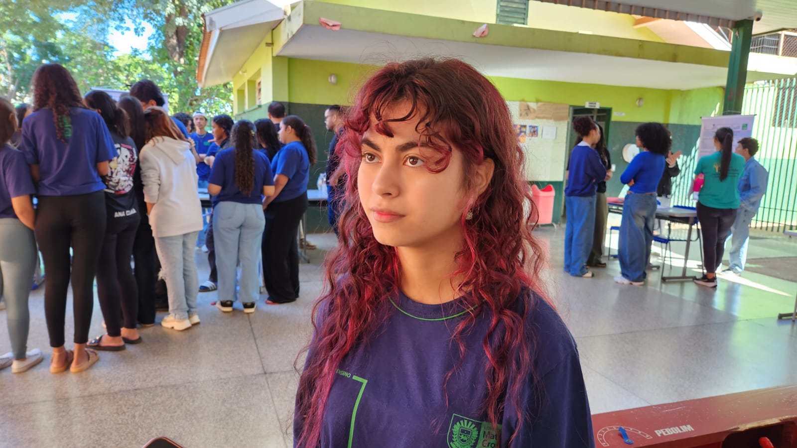 A estudante do 2º ano do Ensino Médio, Sarah Gabas Crepaldi, fala sobre sua trajetória no evento e o quanto a feira fortalece o protagonismo dos alunos.