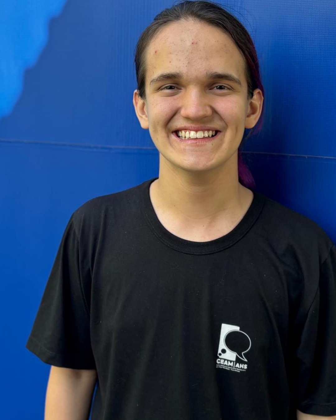 A gerente pedagógica do CEAM/AHS, Eliane Morais, parabeniza Rodrigo pela medalha e deseja que mais estudantes tenham oportunidades de ampliar seus horizontes.