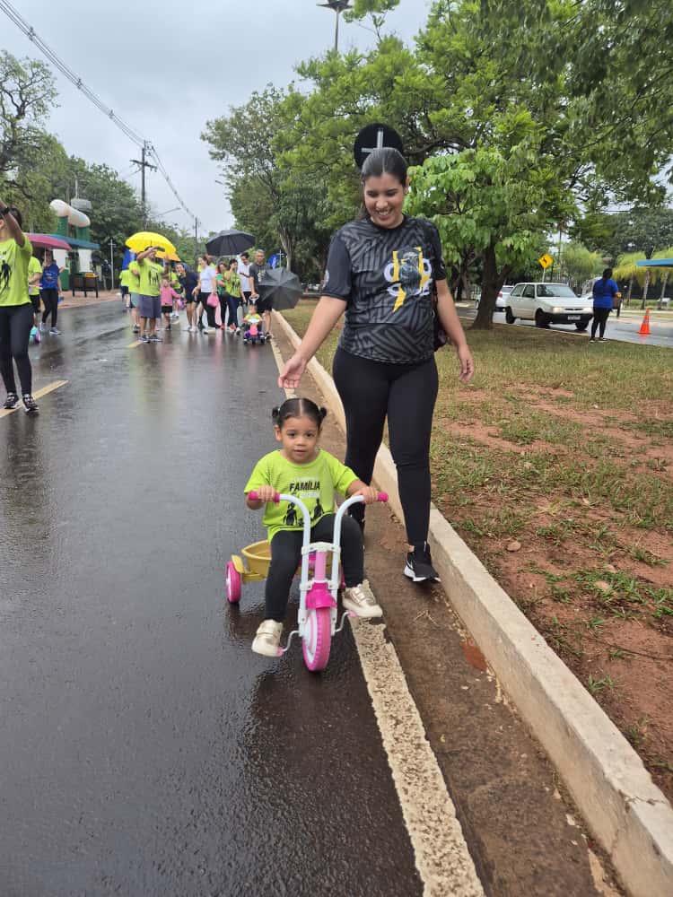Mesmo com o tempo instável, o entusiasmo dos participantes foi contagiante. Famílias caminharam lado a lado, celebrando a importância da convivência, da saúde e do fortalecimento dos vínculos entre escola e comunidade. Ao final do percurso, as crianças receberam medalhas como forma de reconhecimento e incentivo à prática de atividades físicas e à integração familiar.
