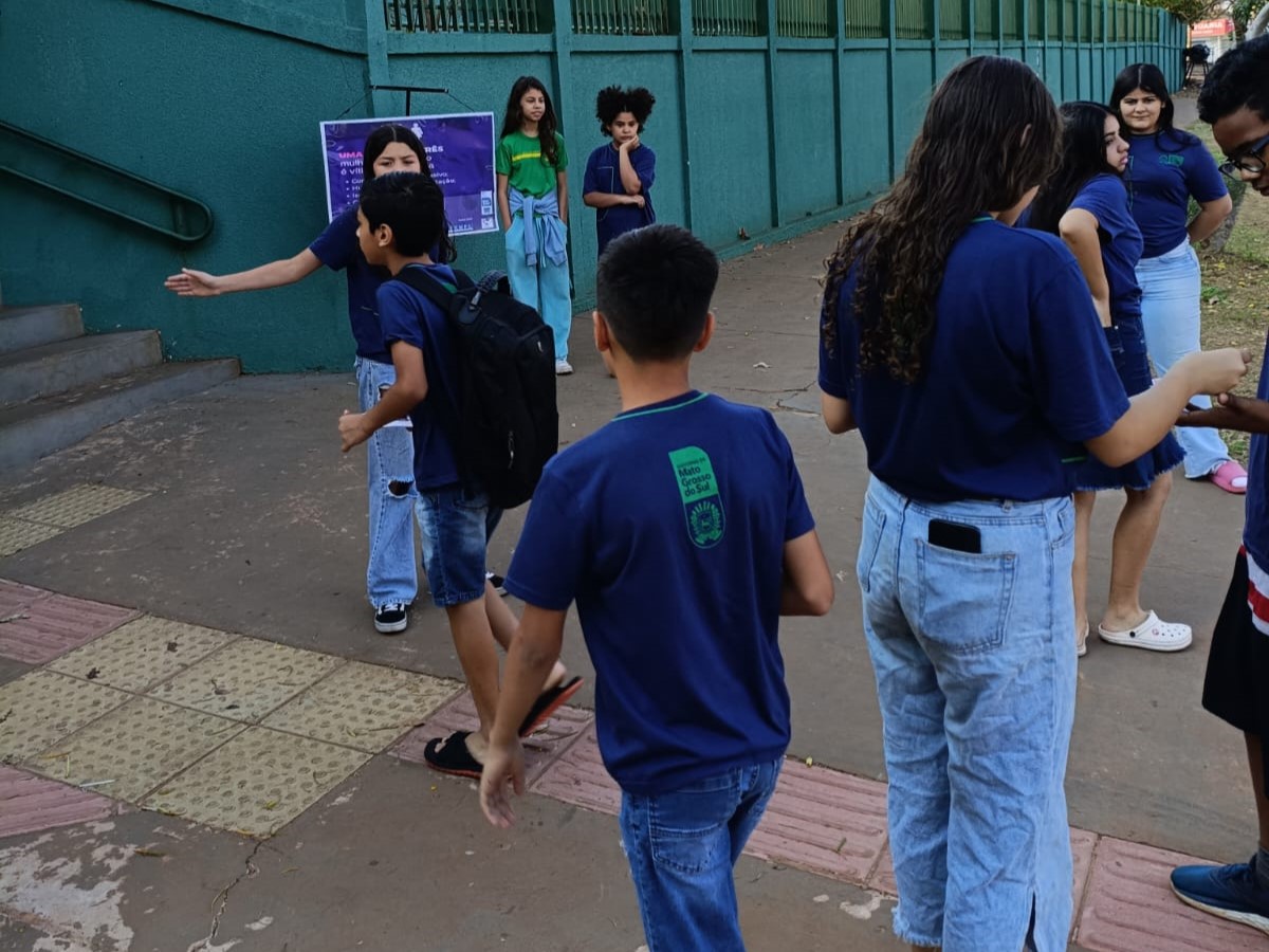 Na Escola Estadual Maestro Frederico Liebermann, em Campo Grande, os estudantes do Grêmio Estudantil EEMFL realizaram, no dia 19 de setembro, acolhida com temática sobre “Violência contra as Mulheres”.