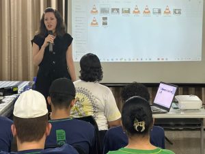 A jornalista destacou os desafios e conquistas da profissão, transmitindo aos estudantes um olhar realista e, ao mesmo tempo, motivador sobre o mercado de trabalho na área da comunicação.