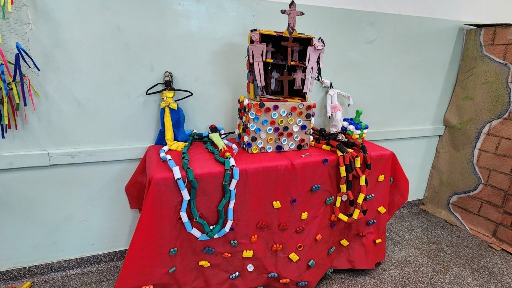 “O Bispo foi um artista que sofreu muito nos manicômios da época, e a arte era o refúgio dele. Ele transformou esse sofrimento em obras cheias de significado. A mais famosa é o ‘Manto’, que até representamos no nosso trabalho. Ele nos ensina que, mesmo diante de injustiças, podemos encontrar um sentido através da arte”.