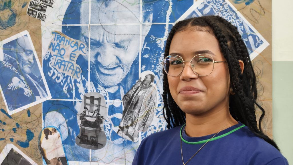 Entre os trabalhos apresentados, o 3º ano destacou a obra e a trajetória de Arthur Bispo do Rosário, relacionando-a à luta antimanicomial. A aluna Nicolly da Silva Morales, 17 anos, explicou a relevância do artista: