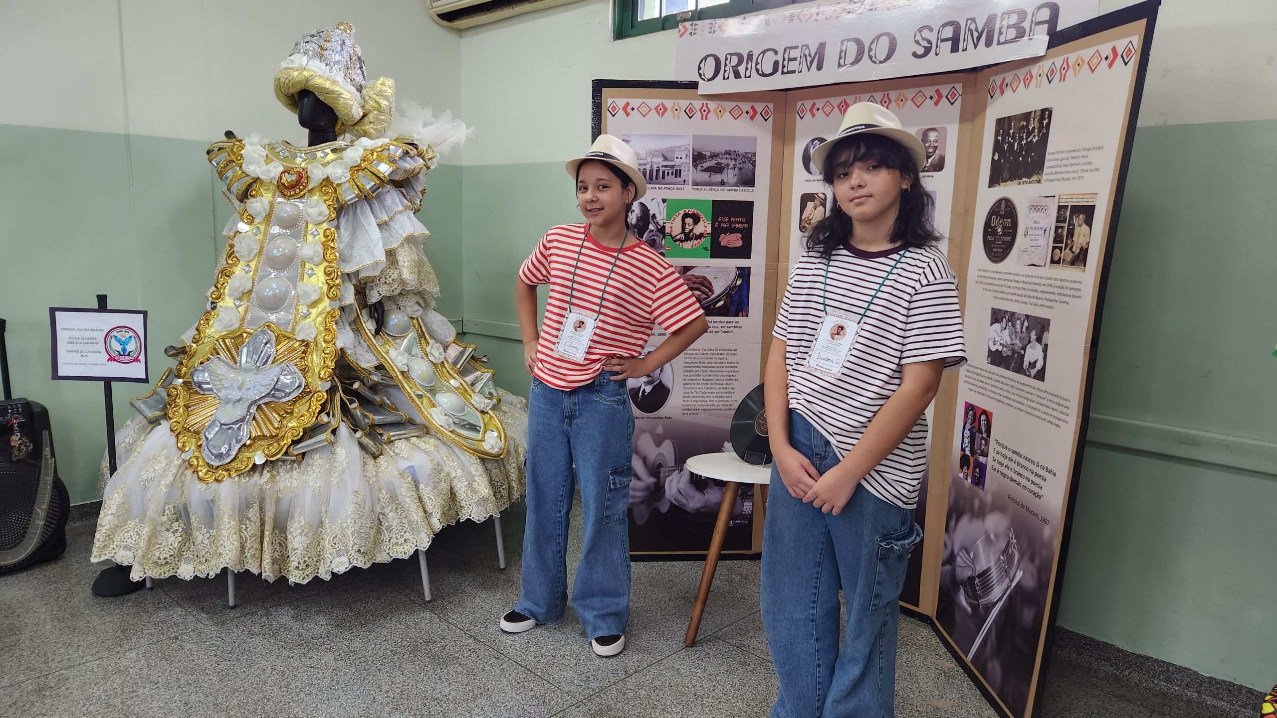 A turma do 6º ano apresentou a trajetória de Tia Ciata, matriarca do samba. O estudante Fábio Vicente de Vargas, 11 anos, destacou o impacto da pesquisa: