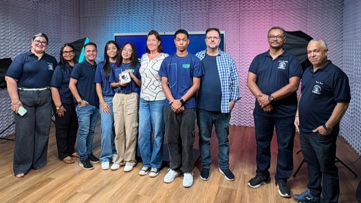Durante a programação, o grupo conheceu estúdios, equipamentos, rotinas de produção midiática e trocou experiências com profissionais responsáveis pelos setores.