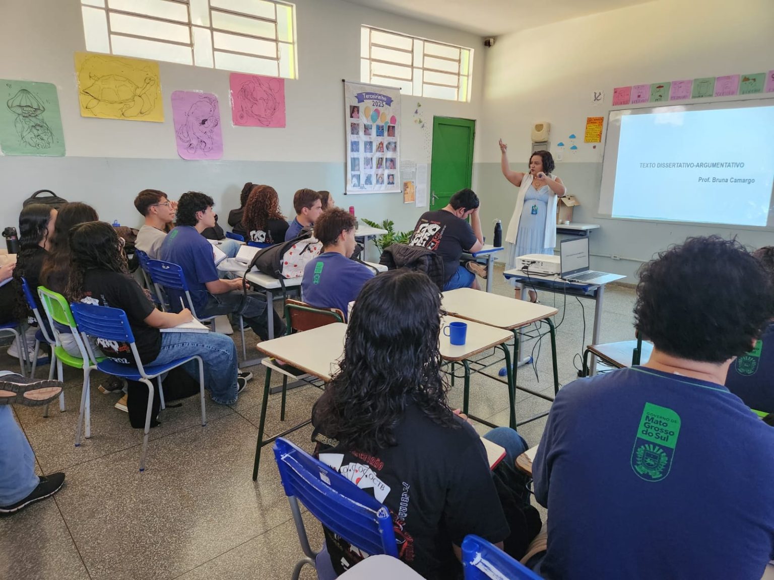 Os estudantes têm acesso a aulas direcionadas que incluem técnicas para resolver questões, simulados e orientações para o ingresso na universidade, acompanhados pela Coordenadora Pedagógica do Ensino Médio, professora Mayana. Recentemente, os alunos participaram de um aulão com a professora Bruna Camargo, graduada em Letras Português/Espanhol pela UFMS e assessora educacional da Coordenadoria de Educação Infantil e Ensino Fundamental. Bruna, autora de uma apostila de redação utilizada na escola e alinhada aos critérios do ENEM, abordou temas como estética e estrutura do texto dissertativo-argumentativo, preparando os jovens de forma prática para o exame.