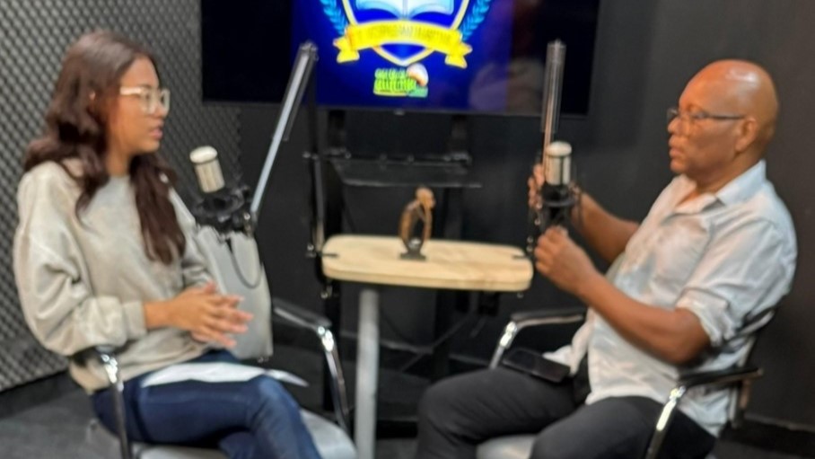 A estudante Millena (1º C) abordou o combate ao racismo estrutural e institucional durante entrevista com o defensor público Dr. Douglas Teixeira, coordenador do Núcleo de Promoção da Igualdade Étnico-Racial (Nupier/MPMS).