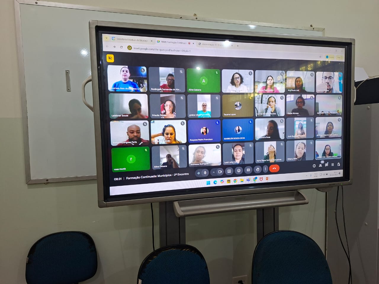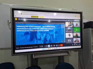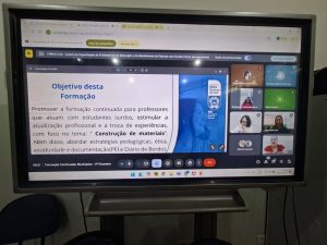 No dia 9, a formação seguiu de forma remota via Google Meet, permitindo a participação de professores de diversos municípios e CRE’s (Coordenadorias Regionais de Educação), ampliando o alcance do evento e promovendo a integração entre profissionais da rede estadual.