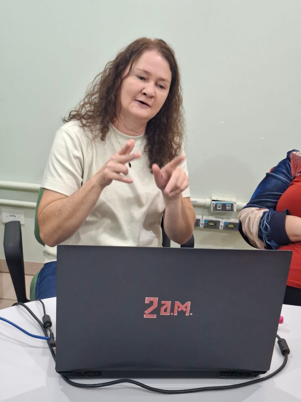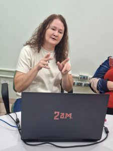 Durante o encontro, a técnica ouvinte Keren da Silva Peralta, do NAAD, abordou a relevância da ética e da postura profissional no papel do professor como mediador comprometido com a inclusão e acessibilidade educacional. Já as técnicas surdas Flávia Martinez Ortiz e Helen Trefzger Ballock conduziram uma dinâmica de “telefone sem fio”, enfatizando a importância da comunicação clara e eficaz no contexto da educação bilíngue.
