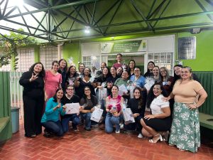 Ao término do encontro, houve sorteio de materiais pedagógicos produzidos para uso com alunos surdos, além de um momento de agradecimento pelo engajamento dos participantes. Foi disponibilizado um formulário para avaliação da formação, que também funcionou como lista de presença e instrumento para coleta de sugestões e temas para futuras capacitações.